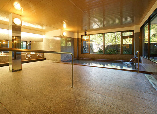 The indoor bath features Simple Alkaline Spring,