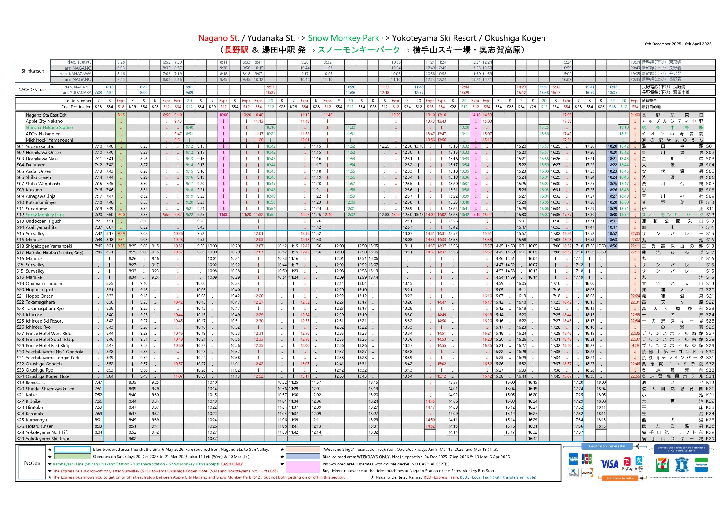 Timetable – Nagano / Yudanaka to Shiga Kogen