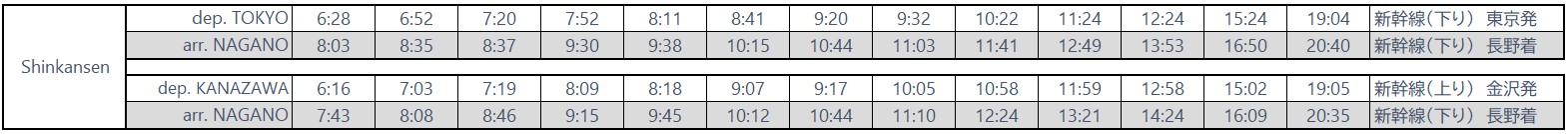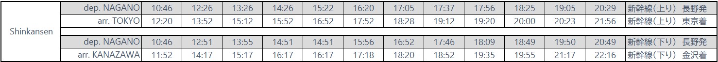 - The Hokuriku Shinkansen timetable is provided for reference. Please allow at least 20 minutes for transfers.