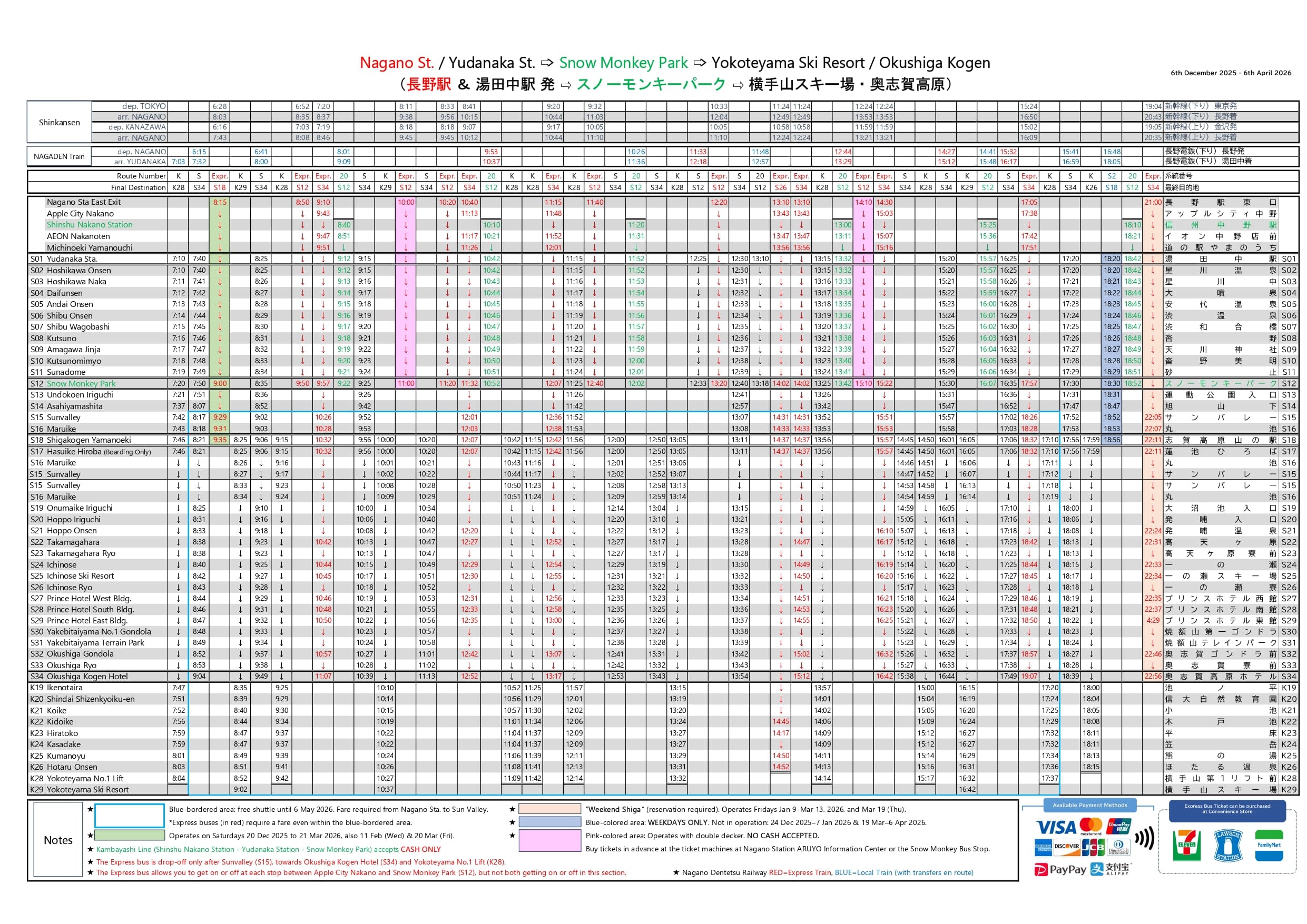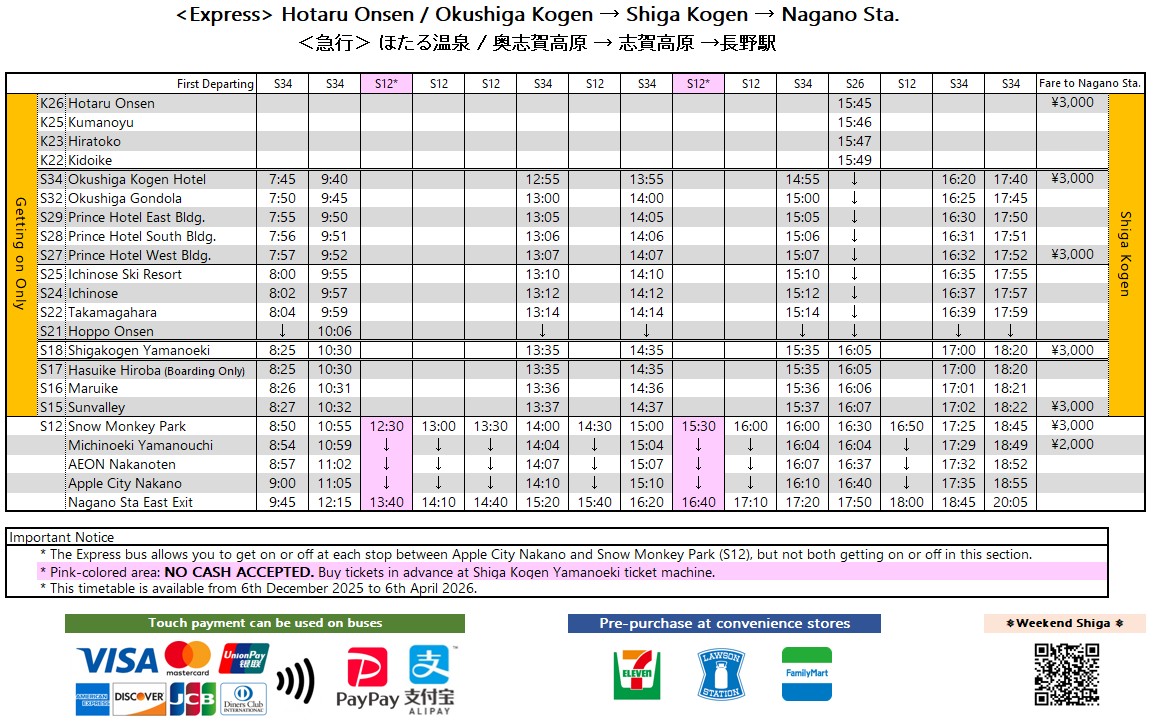 Download PFD file: 25-26 Winter Bus Timetable (Nagano to Shiga Kogen)