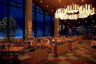 ラウンジ奥のフレンチレストラン「現代」のダイニングにて、和洋のランチメニューをご用意しております。 スキー場と直結し、ブーツのままでお入りいただけます。 昼はカジュアルな雰囲気の中で、ホテルのランチをお楽しみください。 ※ランチのご予約は承っておりません ディナーもあり、和食またはフレンチで、前日までの予約制となります。