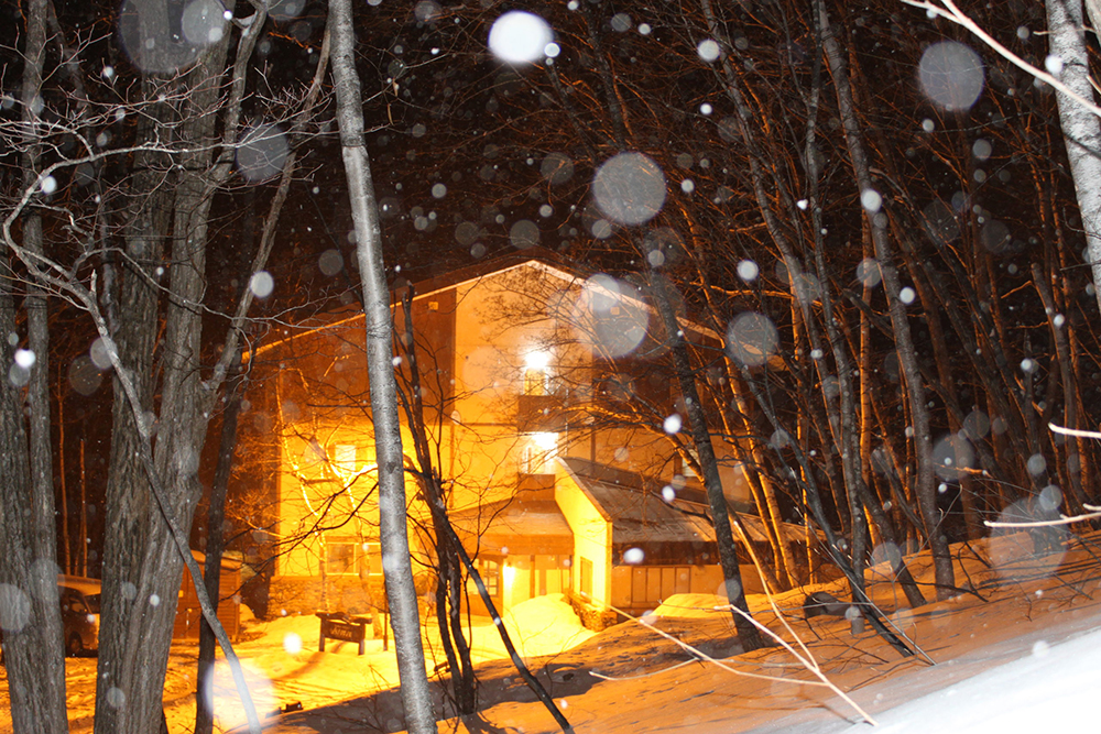 一軒宿的な佇まいですが、車は玄関前までお越しいただけます。冬はゲレンデへ滑って数十秒、歩かずにゲレンデへ行き来できます。