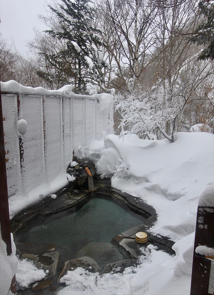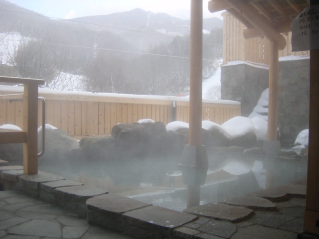 トレッキング、スキー・スノーボードで自然を満喫した後は、翡翠色の温泉で心も体もほぐしませんか?