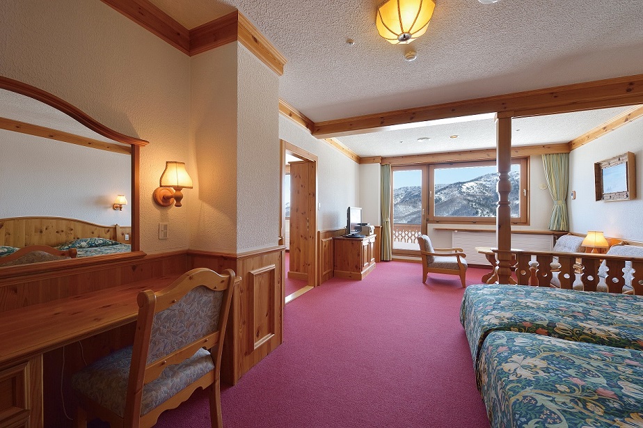 ジャイアント・西館山・東館山スキー場の合流地点の谷あいに位置したスキーインスキーアウトのホテル。 チロリアン家具をふんだんに使った本格ヨーロッパアルプスの雰囲気の建物で優雅にお過ごしいただけます。 天然かけ流し温泉、自慢のディナー、豊かな自然環境に囲まれた静かな環境で皆様をお待ちしております。