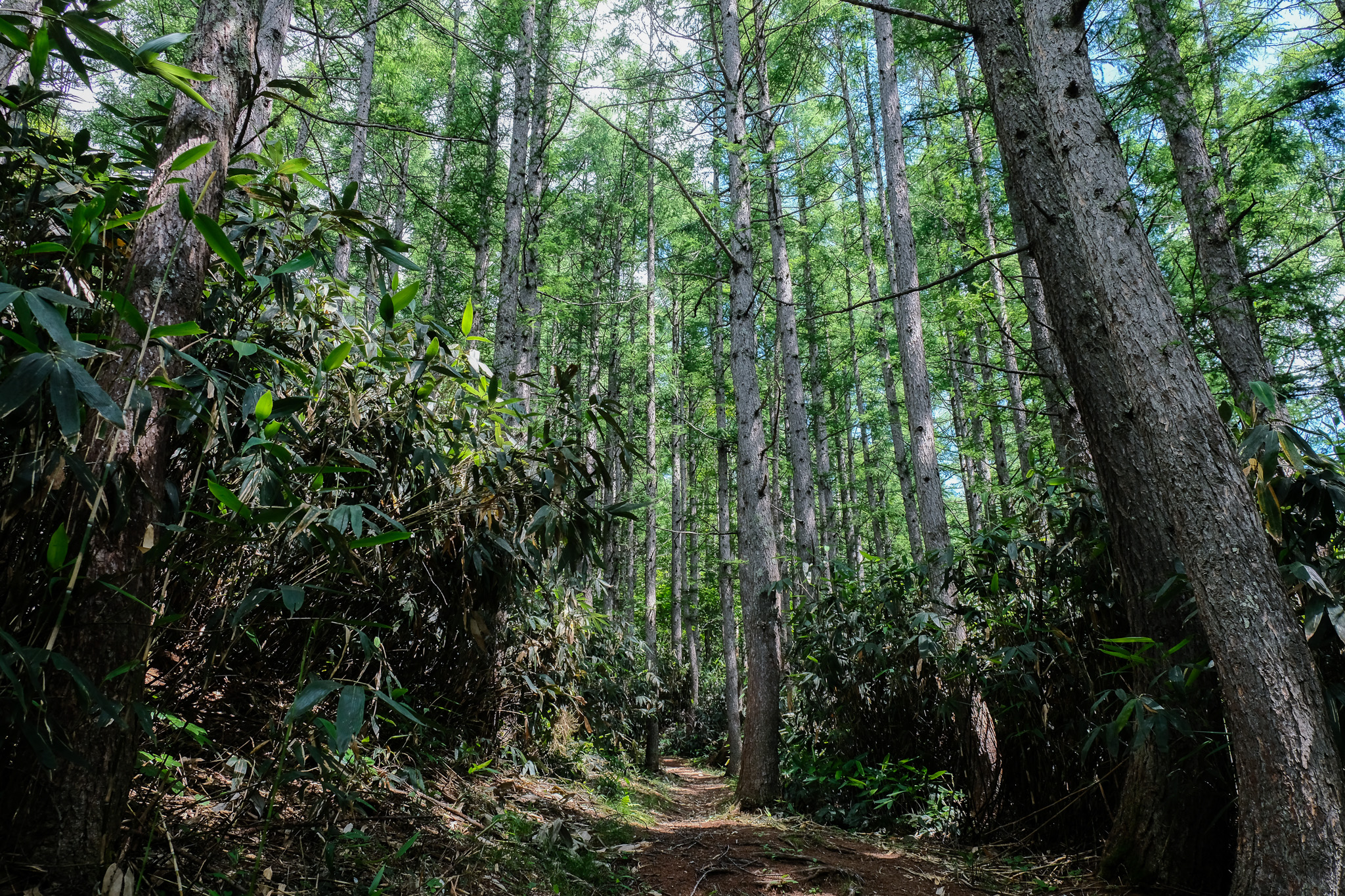 焼額山山頂へのコース展望が抜群で爽快なスキー場の草原を進み、オオシラビソの林を抜けると、そこには美しい稚児池と高山植物の楽園が広がります。