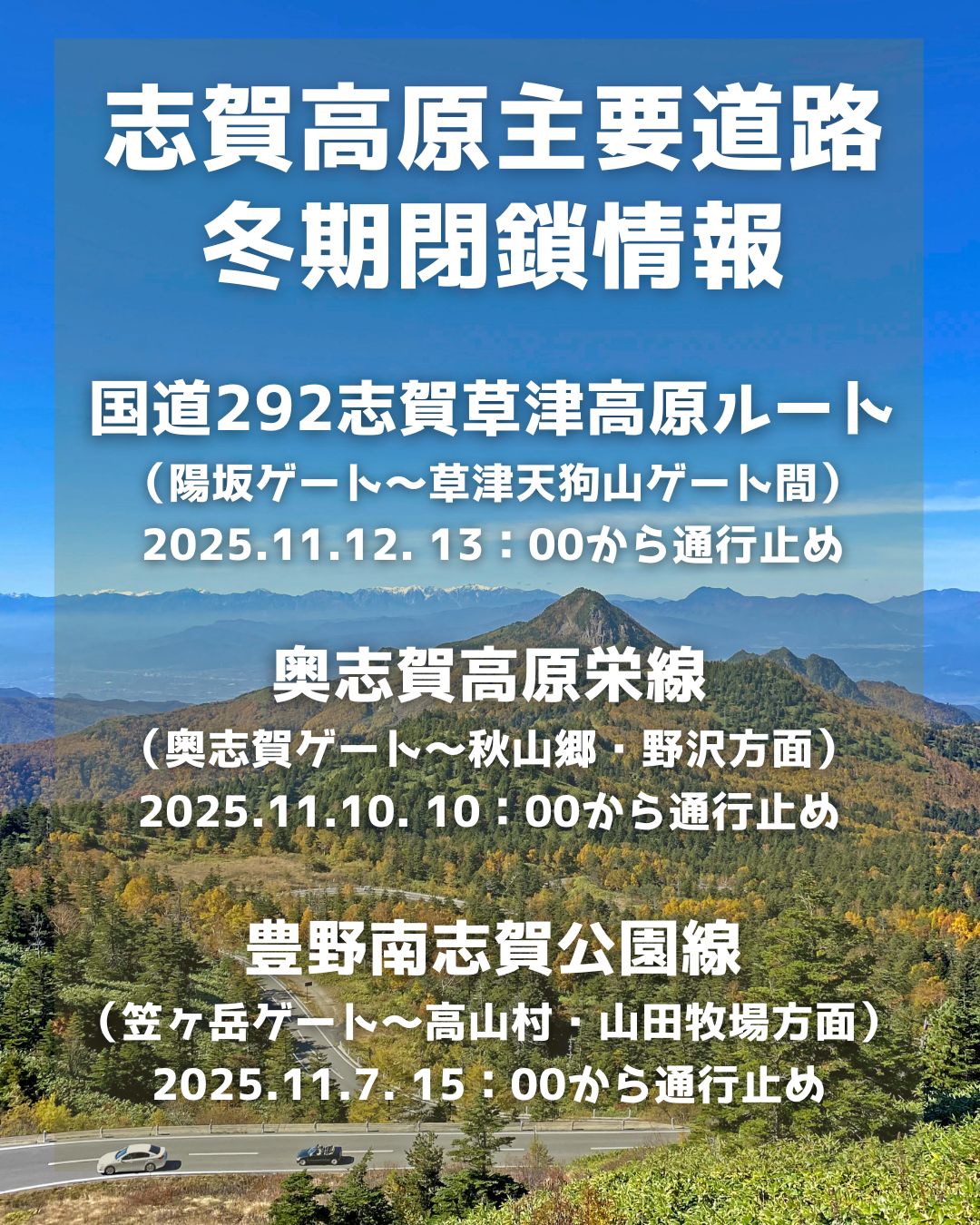 冬期閉鎖開始:2025年11月10日10:00