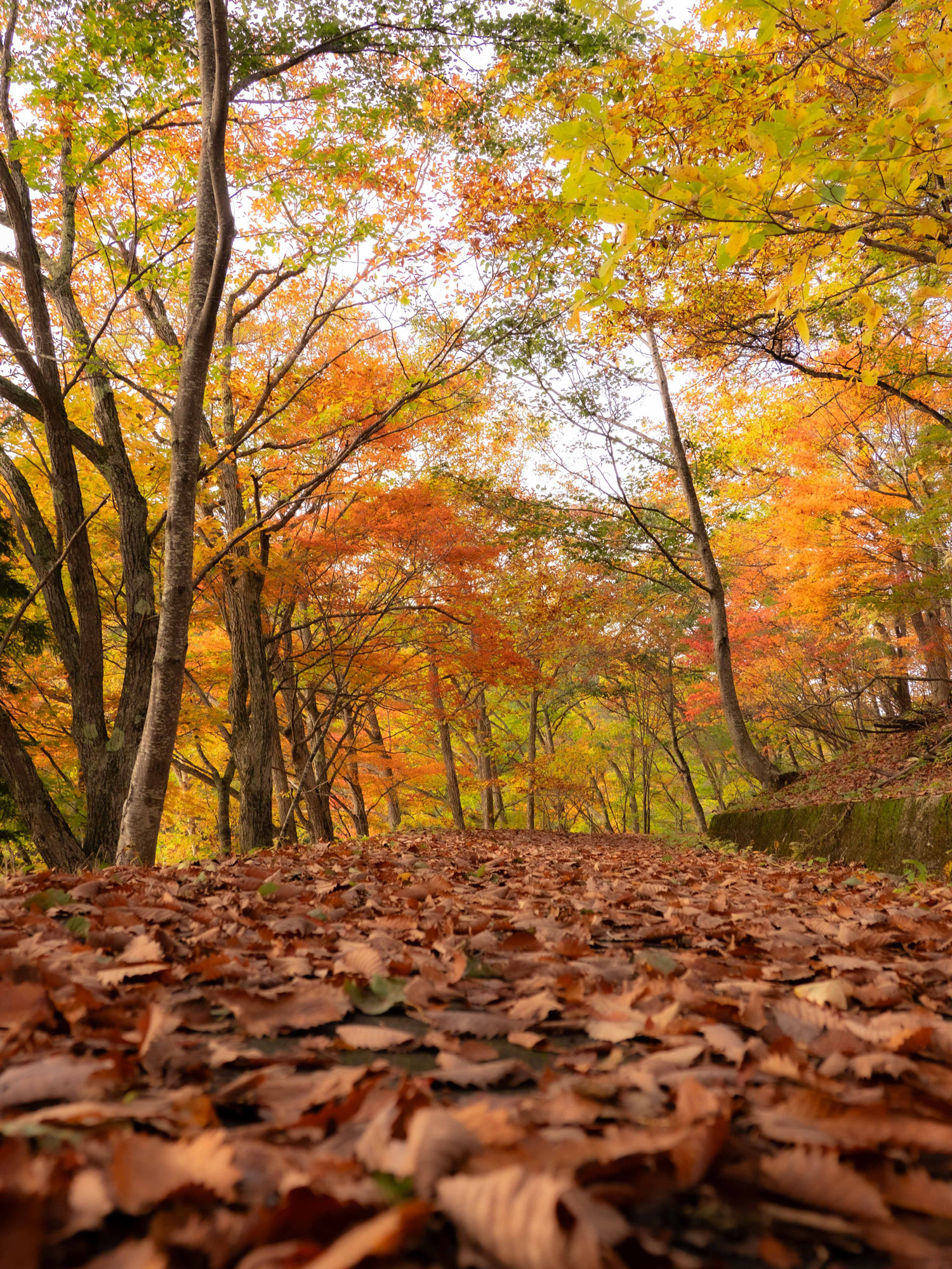 場所:長池 池に沿って歩く林道に、積もった沢山の落ち葉。 その姿はまるで森のステージに繋がるレッドカーペットのようでした。