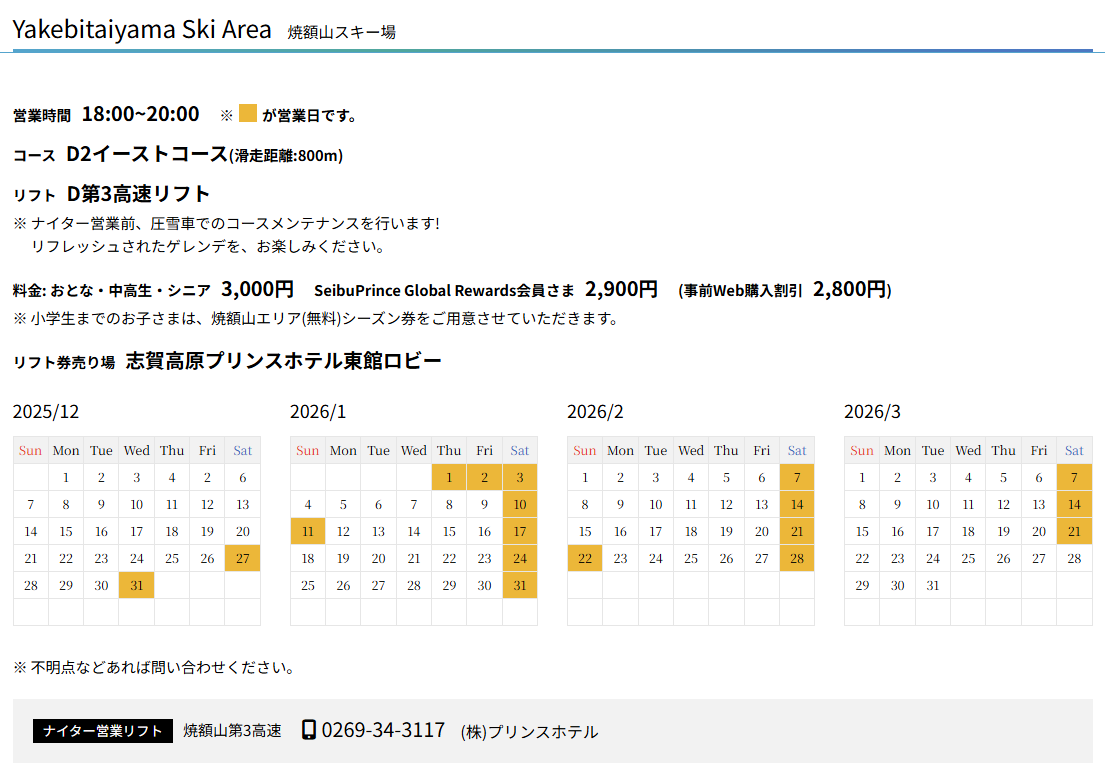 【○※12/20から】焼額山⇔一の瀬山の神(山麓エリアで接続)