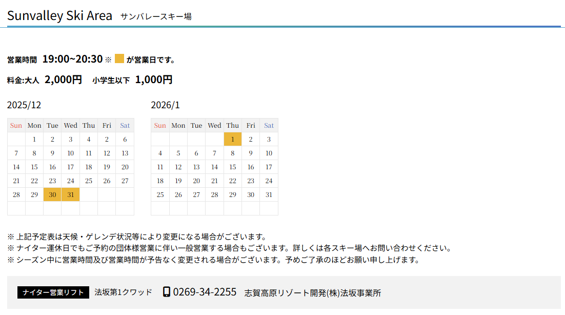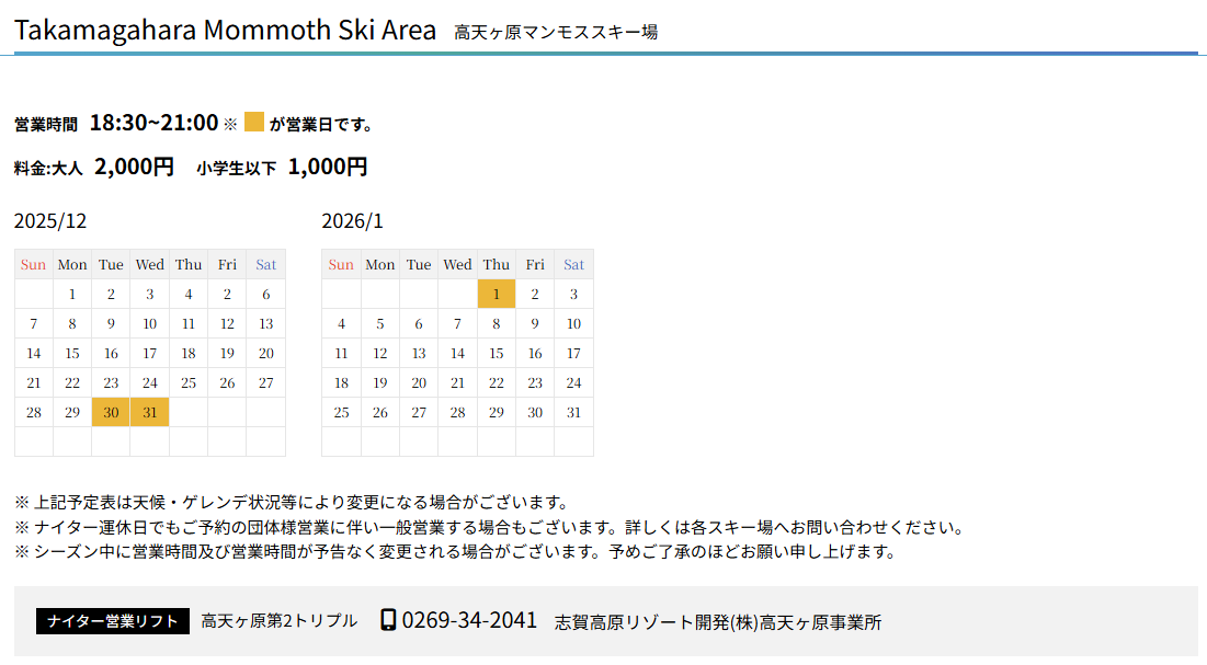 ※志賀高原リゾートゴンドラ・東館山ゴンドラ運行(東館山ゴンドラは一の瀬への移動のみ)